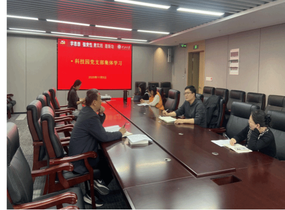 2025年11月5日,科技园党支部在园区会议室组织开展了以“学习贯彻党的二十大精神、推动教育强国建设”为主题的集体学习活动,以进一步统一思想、凝聚力量,为园区高质量发展提供坚强政治保证。