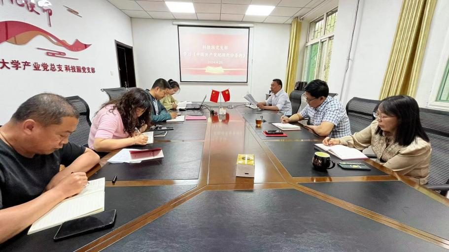 4月26日下午,科技园党支部在二层会议室开展党纪学习教育第一次集中学习,会议由产业党总支书记韩勇同志主持。